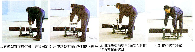 熱熔對接是采用熱熔對接焊機(jī)來加熱管端(熱熔對接溫度為210+10℃),待管端熔化后,迅速將其貼合,保持一定的壓力,經(jīng)冷卻達(dá)到熔接的目的。適用管徑范圍:dn≥90mm