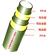 江通牌鋁塑PP-R管材是本公司自主開發的新型綠色環保建材。它有五層復合構成,中間層為薄壁鋁管,內外層是PP-R(北歐化工原料),層與層之間采用與塑料和金屬均能粘接的日本三井熱熔膠,通過高溫高壓擠出成型的復合新型管材。它兼金屬與塑料管優點于一身,克服了PP-R、PE、PEX等受熱膨脹變形的致命缺點,特別適合于熱水輸送系統。其管材和管件采用熱熔連接,永不滲漏,是取暖、別墅、高層建筑、太陽能、化工、制藥、環保及民用建筑的理想管材。    安裝示意圖